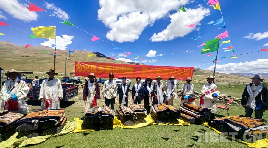 圖為向查那村受災(zāi)群眾捐贈卡墊