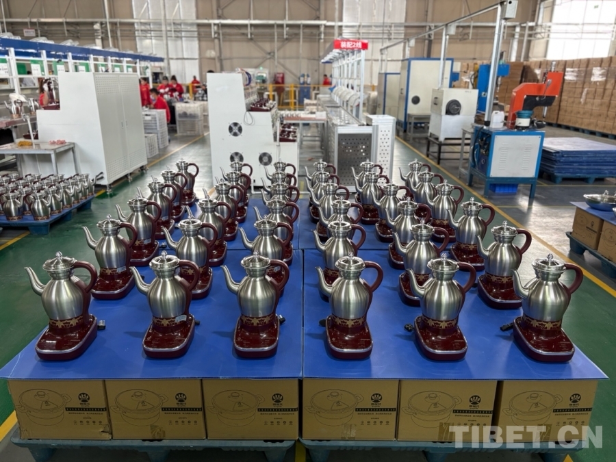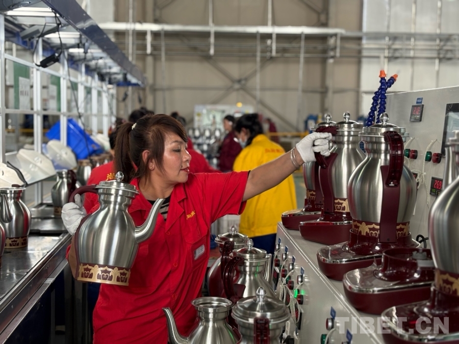圖為員工央宗正在安裝全自動酥油茶壺手柄