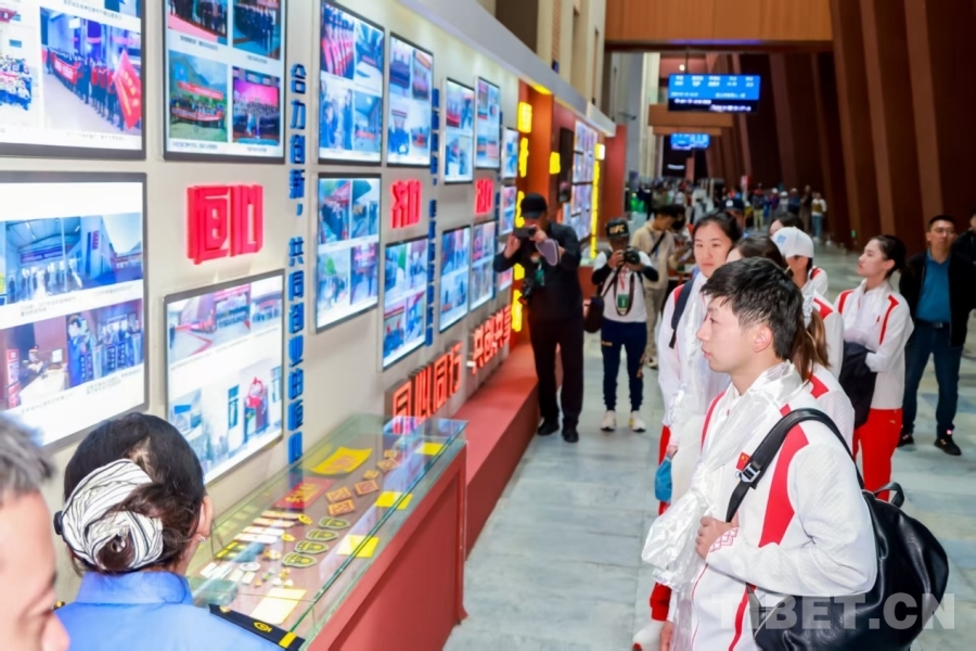 下午4時(shí)30分,列車抵達(dá)拉薩站。奧運(yùn)冠軍們走進(jìn)青藏鐵路精神文化長廊,在一幅幅老照片、一件件老物件前駐足。“這是建設(shè)者用過的氧氣瓶,那是第一列進(jìn)藏列車的車票……”講解員聲情并茂的講述令在場的運(yùn)動(dòng)員感動(dòng)不已。