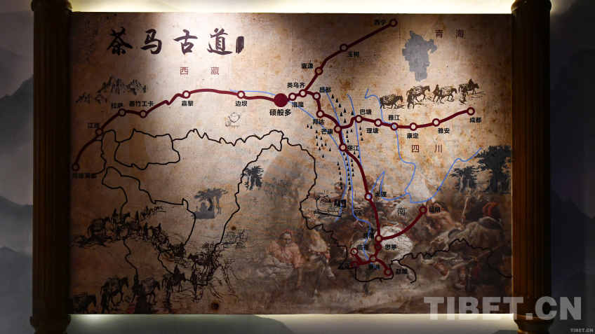 圖為碩督歷史文化展覽館內(nèi)的茶馬古道示意圖,“碩般多”(碩督)處于重要位置 攝影:趙振宇