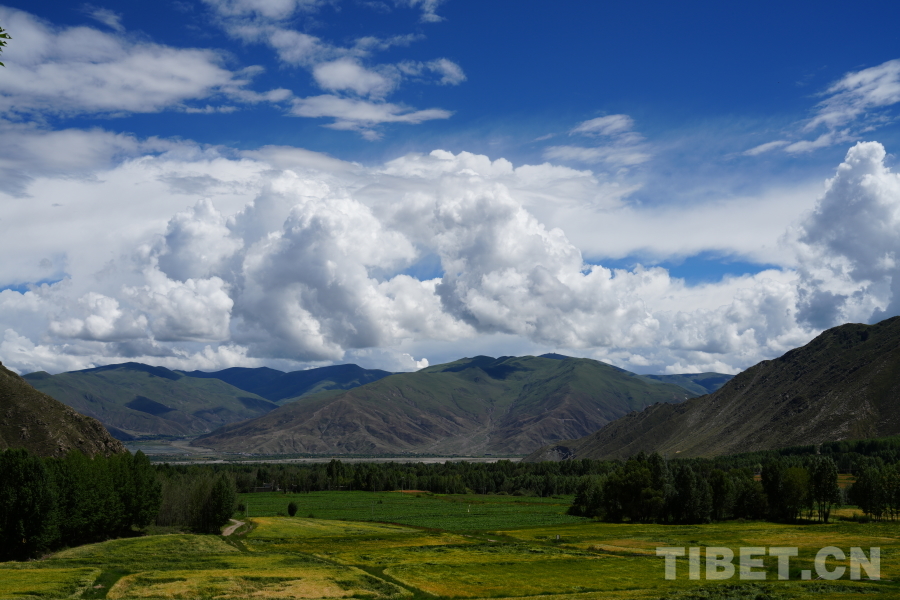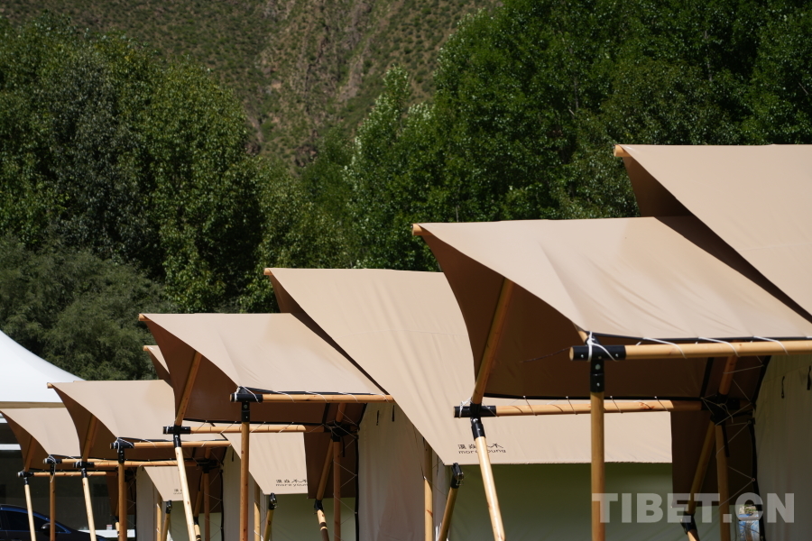 中國西藏網(wǎng)訊 站在觀景臺遠眺,綠樹成蔭,一陣風吹過,麥浪金黃;漫步色甫林卡,帳篷搭建得整整齊齊,牛羊悠閑地曬太陽;走進望果賽馬場,當?shù)厝罕娨言缭缵s來搭建帳篷,各家各戶其樂融融。