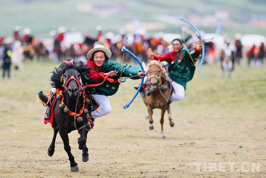 當(dāng)天下午,速度與激情仍在八一賽馬場(chǎng)不斷上演。三項(xiàng)10000米速度耐力賽迎來(lái)最終角逐。大馬組如離弦之箭,破空而出;中馬組疾行如風(fēng),勢(shì)不可擋;小馬組氣勢(shì)如虹,奮蹄爭(zhēng)先。每一次驚心動(dòng)魄的彎道超越,都讓觀眾席爆發(fā)出海嘯般的助威,廣袤的草原仿佛瞬間幻化成一片沸騰的競(jìng)技海洋。與此同時(shí),騎射邀請(qǐng)賽也在多旺塘精彩上演。馬蹄翻飛間,騎手張弓搭箭,弓弦響處,箭矢流星般釘入靶垛?!斑@不僅比射術(shù),更比人馬合一的默契?!币晃簧碇鴤鹘y(tǒng)服飾的本地牧民向身旁的游客解釋?zhuān)壑辛髀冻鰺o(wú)法掩飾的自豪。