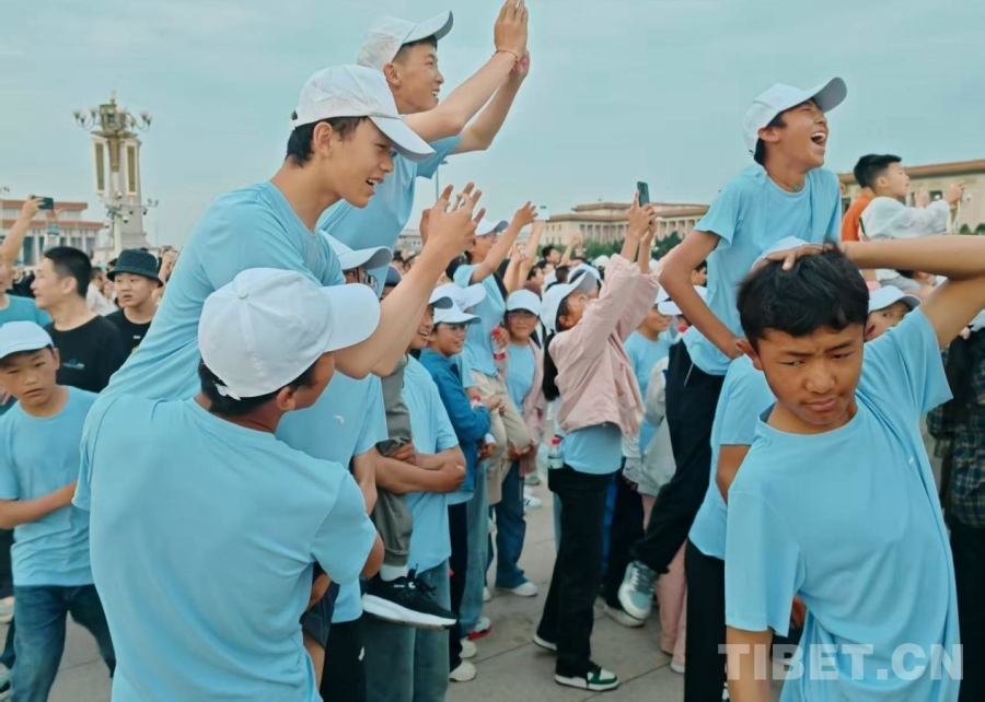 圖為參加“山河同脈·京華筑夢”研學活動的西藏日喀則定日縣中學生們在天安門廣場 攝影:張源