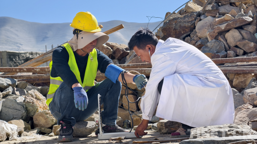 健康守護(hù)網(wǎng),筑牢重建防線。月初頂層澆筑時(shí),施工隊(duì)員老張不慎踩中鐵釘。駐村工作隊(duì)立刻協(xié)同村醫(yī)貢嘎旦增現(xiàn)場(chǎng)處置,全程跟蹤治療確保傷口未感染。貢嘎旦增的足跡遍布工地,開展健康服務(wù)5輪,測(cè)量血壓47人次,發(fā)放常用藥品30余份,覆蓋200余人。鄉(xiāng)衛(wèi)生院院長(zhǎng)為19名群眾定制慢性病方案,藏醫(yī)拉姆的“呼吸調(diào)節(jié)法”更有效舒緩了70余人的心理焦慮。