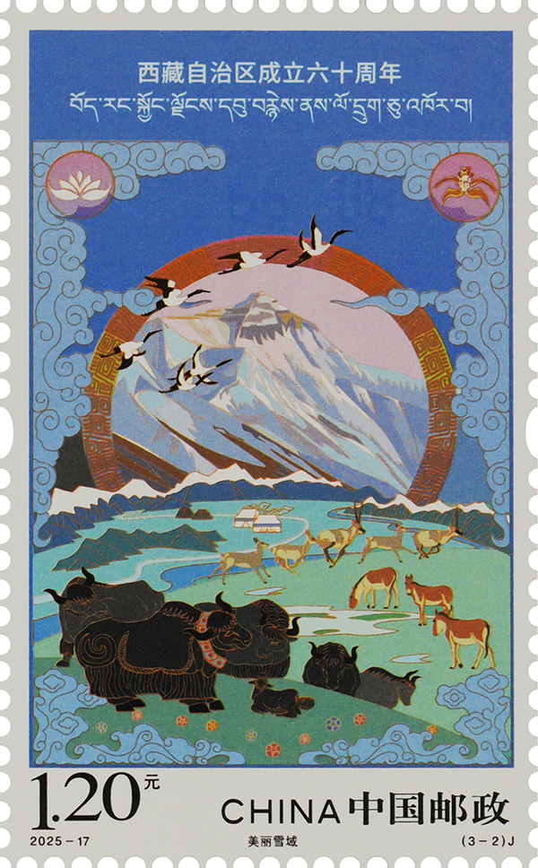 圖為《西藏自治區(qū)成立六十周年》紀(jì)念郵票之“美麗雪域” 中國郵政西藏分公司供圖