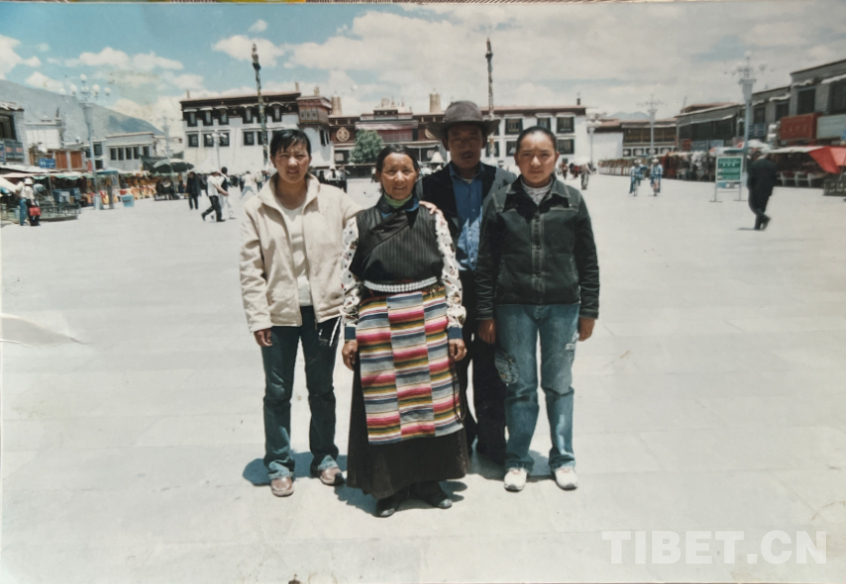 這是2005年我和丈夫、大女兒、小女兒在拉薩大昭寺前照的。那時是去給小女兒看病,當時我五十歲。