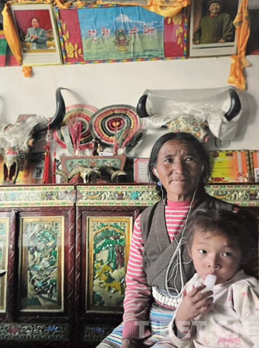 這房是我們家蓋的第三套房,2018年新蓋的,我旁邊的是大女兒和二女兒。大女兒只上了三年級,后來在家放牧。之后出嫁了,孩子已經十八歲,現在在林芝上學,明年就要參加高考了。