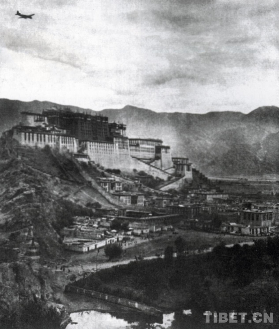 歷史照片:西藏民航飛機飛過布達(dá)拉宮。民航西藏自治區(qū)管理局供圖
