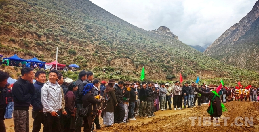 據(jù)村民介紹,普夏村是一個(gè)200多人的小山村,村里每年都會(huì)舉辦望果節(jié)?!敖衲晖?jié)除了傳統(tǒng)的賽馬會(huì),昨天還第一次舉行了賽牦牛,場面特別震撼。因?yàn)榇笈F饩蟛缓每刂?,所以大家都?歲左右的小牛參賽。”