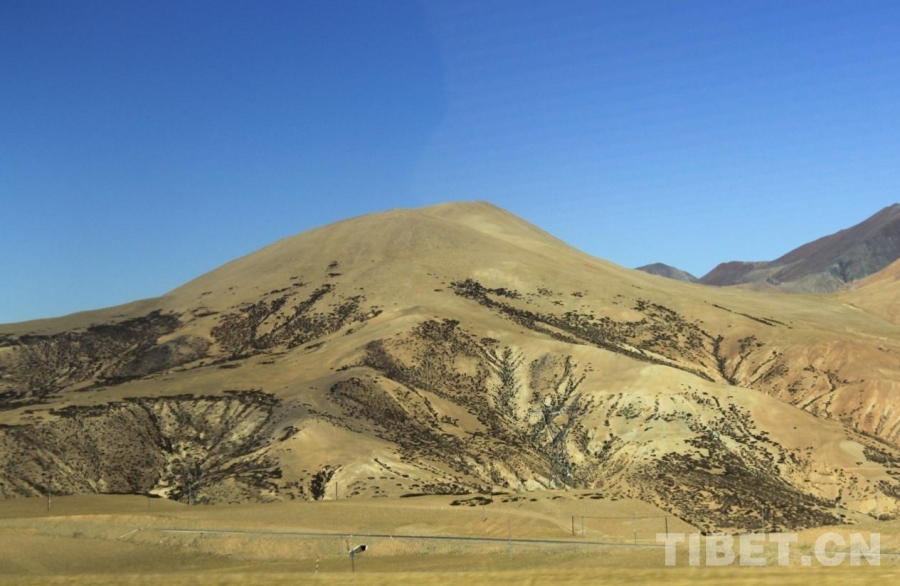圖為阿里普蘭到札達(dá)沿途,有些山上覆蓋有低矮植被,仿若山長出“胡子” 攝影:趙釗