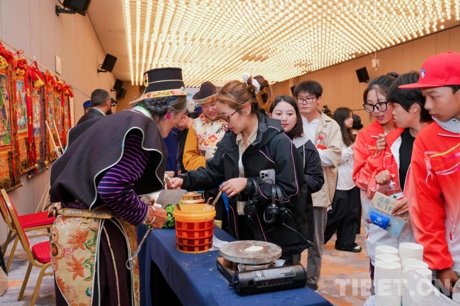活動現(xiàn)場還設(shè)置了茶歇區(qū)、展覽閱讀區(qū)和非遺體驗區(qū)。嘉賓們品嘗工布阿拉酒與藏式茶點,欣賞青年藝術(shù)家畫作和林芝主題圖書,并親身體驗藏香制作、藏文書法、藏紙拓印等非遺項目,多維度感受林芝文化的生機與魅力。