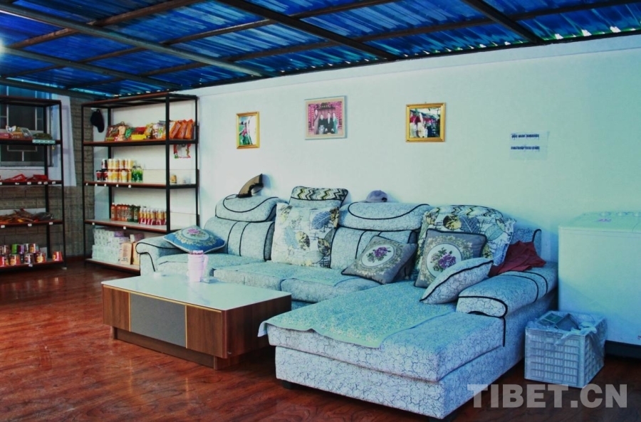 尼吉拉姆家在陜西援建邊境小康示范新居的一排排樓房中靠路邊一戶。走進(jìn)戶門,院子搭著棚頂,形成了一個(gè)大的會(huì)客室,墻邊一溜柜子,上邊擺滿飲料、生活用品等,就是一個(gè)小小的便民商店了。這只是尼吉拉姆“產(chǎn)業(yè)”中的一項(xiàng),她和丈夫羅啟明還經(jīng)營(yíng)一家養(yǎng)雞場(chǎng)、兩人都擔(dān)任護(hù)邊員等,加上國(guó)家邊境補(bǔ)貼、草場(chǎng)補(bǔ)貼等,一年下來(lái)能有幾十萬(wàn)元收入。