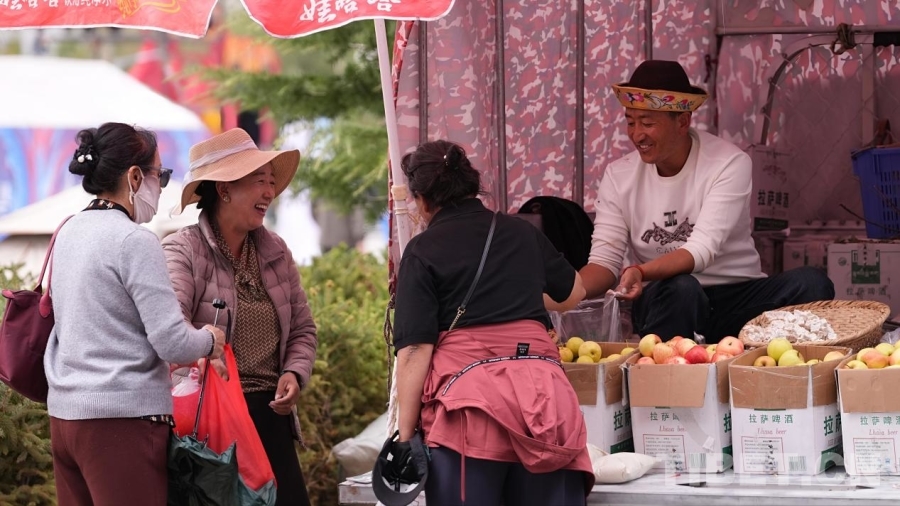 圖為10月2日,市民群眾在活動(dòng)現(xiàn)場(chǎng)選購(gòu)林芝蘋果