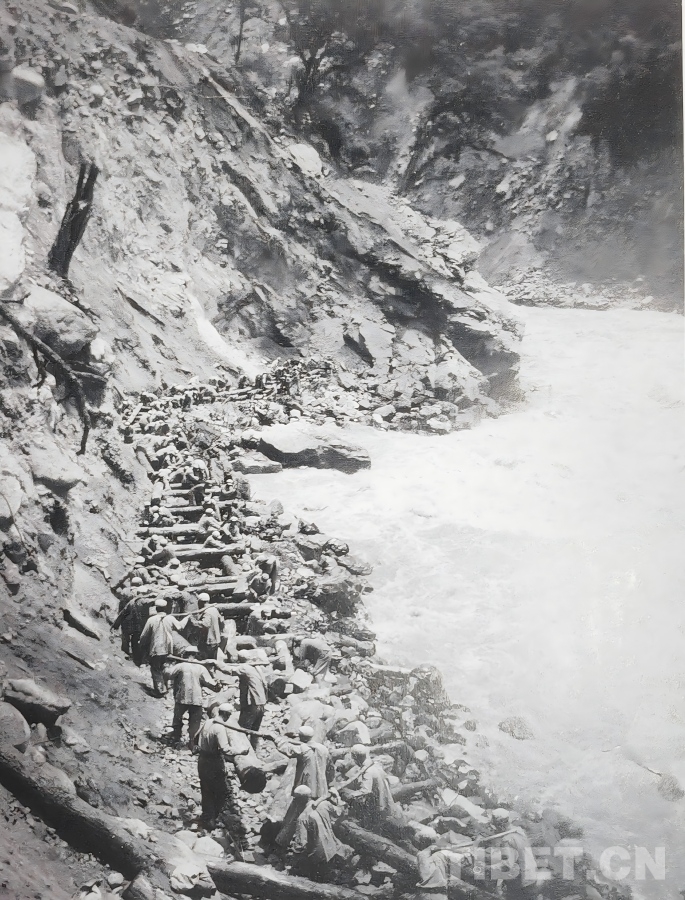 圖為上世紀50年代初,康藏公路扎木路段(位于今波密與魯朗之間)的筑路現(xiàn)場 作者供圖