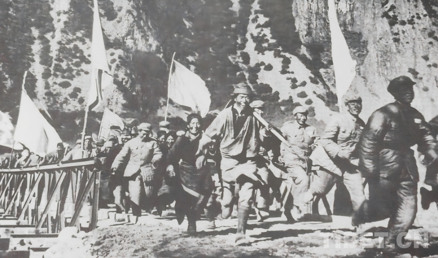1951年10月,人民解放軍正式進駐拉薩,隨著各項工作穩(wěn)步推進,局勢趨于穩(wěn)定。西藏工委、西藏軍區(qū)同西藏地方政府協(xié)商加快修建康藏公路的問題,于1952年在拉薩成立第一工程局(后改為第一施工局),1953年1月筑路委員會成立,下設西線筑路指揮部。進藏部隊、地方干部與各族民工(西線筑路大軍)從拉薩出發(fā),先打通拉薩河南岸至墨竹工卡的山路,再頂著米拉山口的暴風雪鋪筑路基,一點點將公路向著巴河的方向延伸。兩支筑路大軍隔著雪山峽谷,卻以同樣的堅韌,在高原上刻下屬于中國人的英勇無畏!