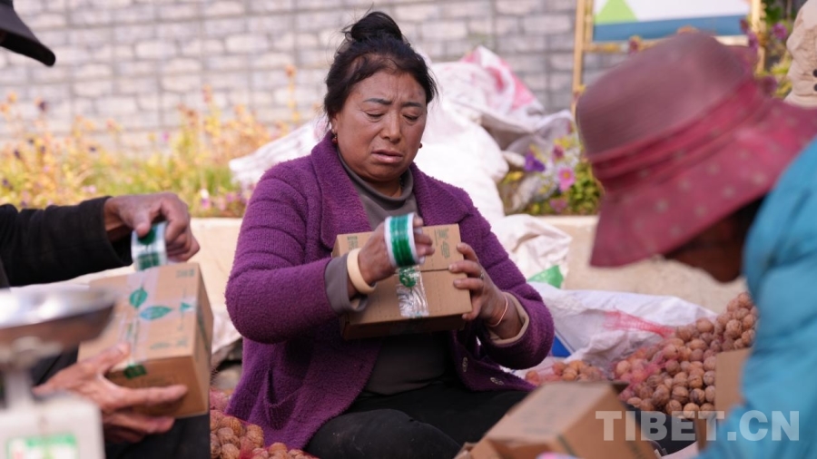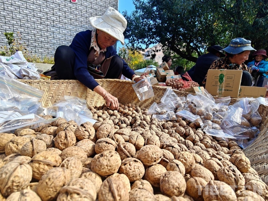 中國西藏網(wǎng)訊 10月21日,在西藏山南市加查縣安繞鎮(zhèn)拉崗村的千年核桃林內(nèi),村民們正忙碌地將今秋采收的核桃打包,準(zhǔn)備通過電商平臺發(fā)往全國各地的顧客手中。