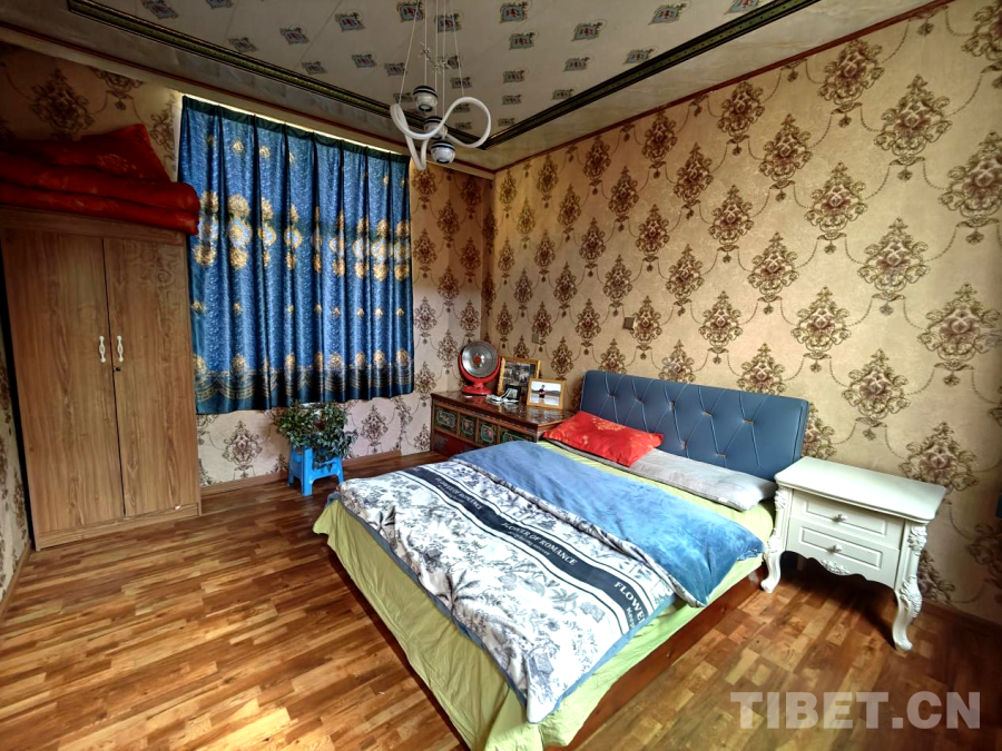 這處兩層藏式民居,二層是家人整潔舒適的臥室,點(diǎn)綴著個性化的生活照片;一層是寬敞的客廳與廚房等,各類花卉綠植為室內(nèi)增添了生機(jī)與溫馨。整個居所干凈明亮,與傳統(tǒng)印象中的農(nóng)居大不相同。