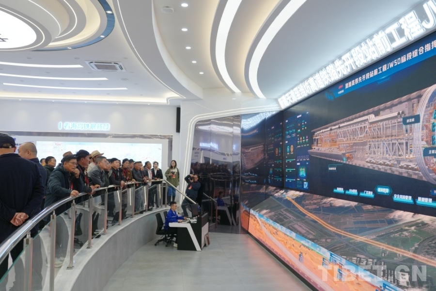 圖為西藏基層干部參觀中鐵十四局津濰高鐵先開段站前工程項目展廳 攝影:王茜