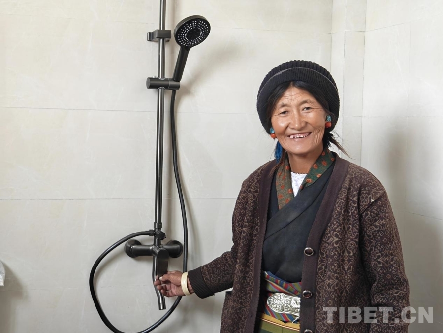 圖為達(dá)桑的愛(ài)人正向記者展示自家的淋浴設(shè)施,臉上洋溢著幸福的笑容