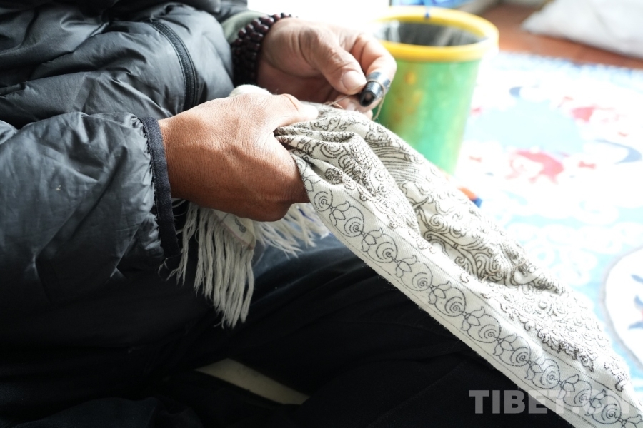 圖為合作社員工在做精美刺繡,編織這條刺繡圍巾需耗費一個月之久 攝影:張藝彤
