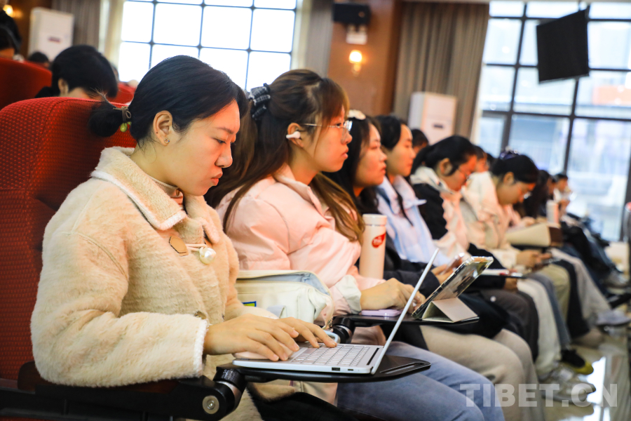 圖為學(xué)員代表在認(rèn)真做筆記 攝影:龍真多吉