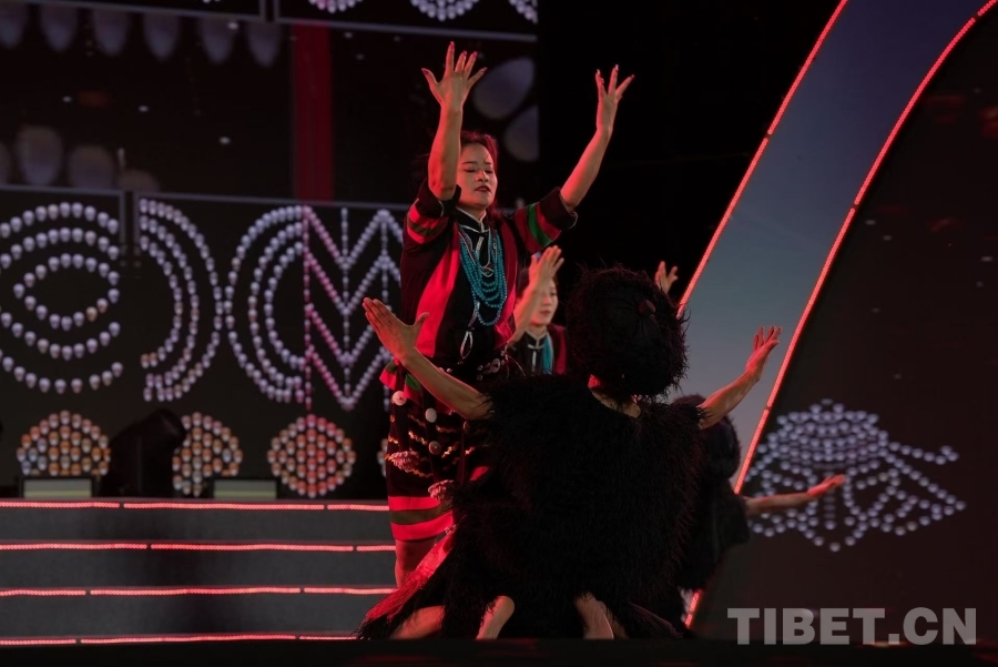 在開幕式文藝晚會上,墨脫縣藝術(shù)團作為晚會的“文化使者”,通過五支特色舞蹈,將墨脫的民族文化與精神風(fēng)貌展現(xiàn)得淋漓盡致:開場舞《相約墨脫》中,舞者身著門巴族、珞巴族服飾,激昂的舞步與悠揚旋律交織,瞬間將觀眾帶入“蓮花秘境”的冬日幻境;《靈動門珞》以肢體語言為筆,生動重現(xiàn)門巴族織錦時的細膩指尖、珞巴族狩獵時的矯健身姿,剛?cè)岵膭幼鞴蠢粘鰞蓚€民族千年生活圖景,贏得現(xiàn)場掌聲雷動。