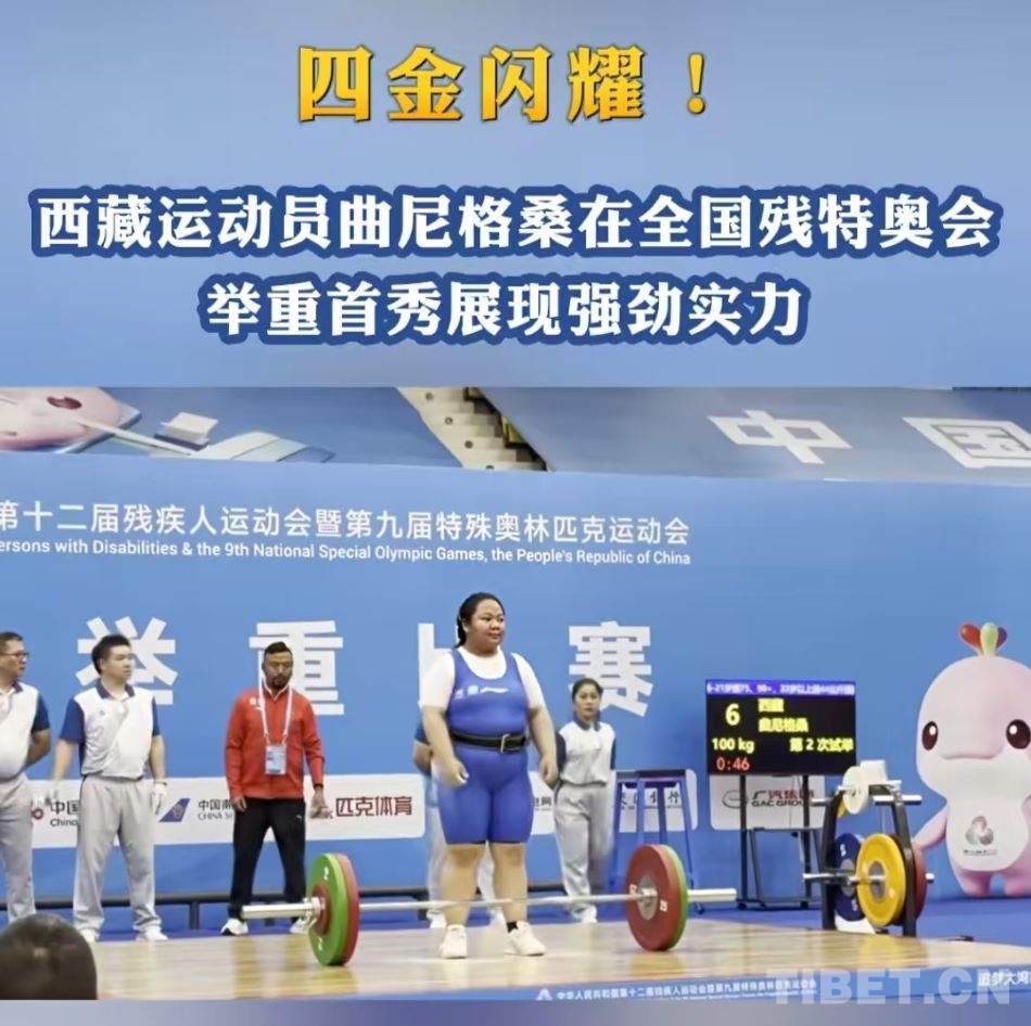 中國西藏網(wǎng)訊 12月13日,全國殘?zhí)貖W會舉重比賽決賽在廣東省中山市舉行,西藏自治區(qū)18歲殘疾人運(yùn)動員曲尼格桑表現(xiàn)亮眼,在90公斤級以上(含深蹲、臥推等)四項(xiàng)決賽中一路領(lǐng)先,斬獲四枚金牌,站上領(lǐng)獎臺時激動落淚。值得一提的是,這是西藏自治區(qū)今年首次組隊(duì)參加特奧舉重比賽。(消息來源/西藏衛(wèi)視)