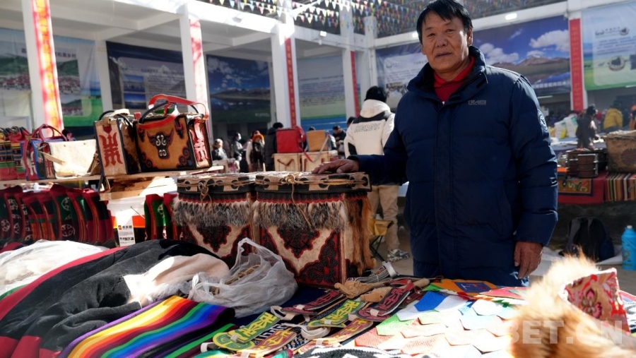 在巴青縣阿秀鄉(xiāng)3村村民彭措的展臺前,充滿牧區(qū)特色的服飾、背包和裝飾品等吸引了不少顧客。彭措告訴記者,所有產(chǎn)品均為純手工制作,技藝從父親傳到他,如今他又傳給了兒子,父子二人共同從事手工藝制作?!叭缃窭习傩丈钤絹碓胶?,對手工藝品的需求也越來越多?!彼吲d地說,“去年展銷會銷售額達(dá)到五六萬元,今年希望能賣得更好!”
