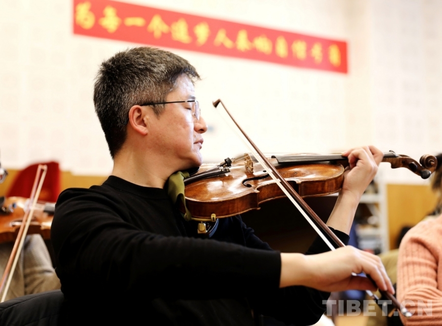 圖為中央歌劇院交響樂團(tuán)首席杜玄正在排練大型交響組曲《夢(mèng)·路》 攝影:劉莉