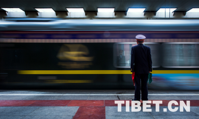 圖為一列火車駛出拉薩站