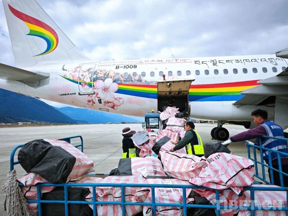 圖為林芝桃花節(jié)期間出港貨物保障現場