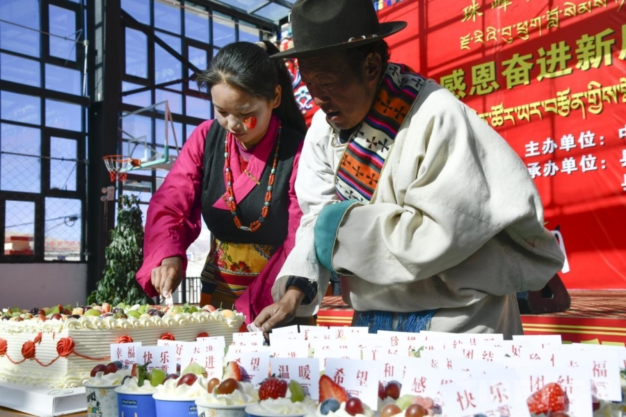 圖為定結縣郭加鄉(xiāng)村民切開了慶祝新居新生活的大蛋糕(攝于2026年1月6日) 攝影:趙振宇