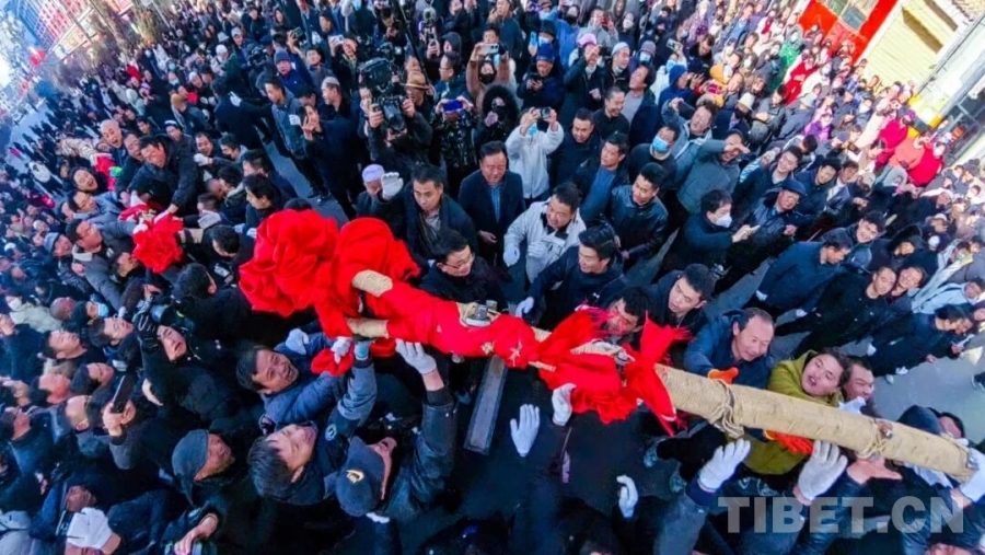 圖為甘南州臨潭縣傳統(tǒng)民俗活動——萬人扯繩