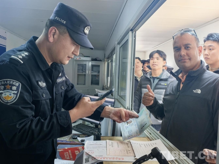 圖為珠峰邊境派出所民警查驗(yàn)境外游客信息