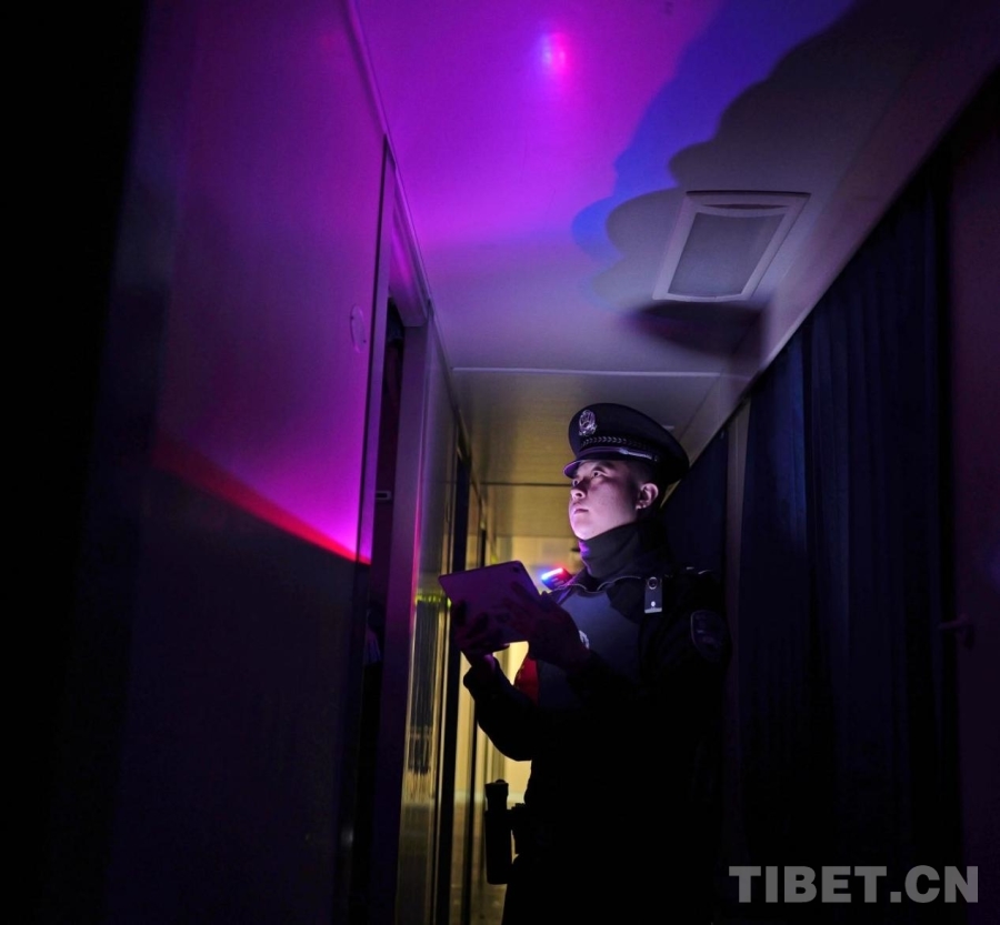 圖為夜間行車期間,乘警嚴(yán)格開展人票證一致核查工作