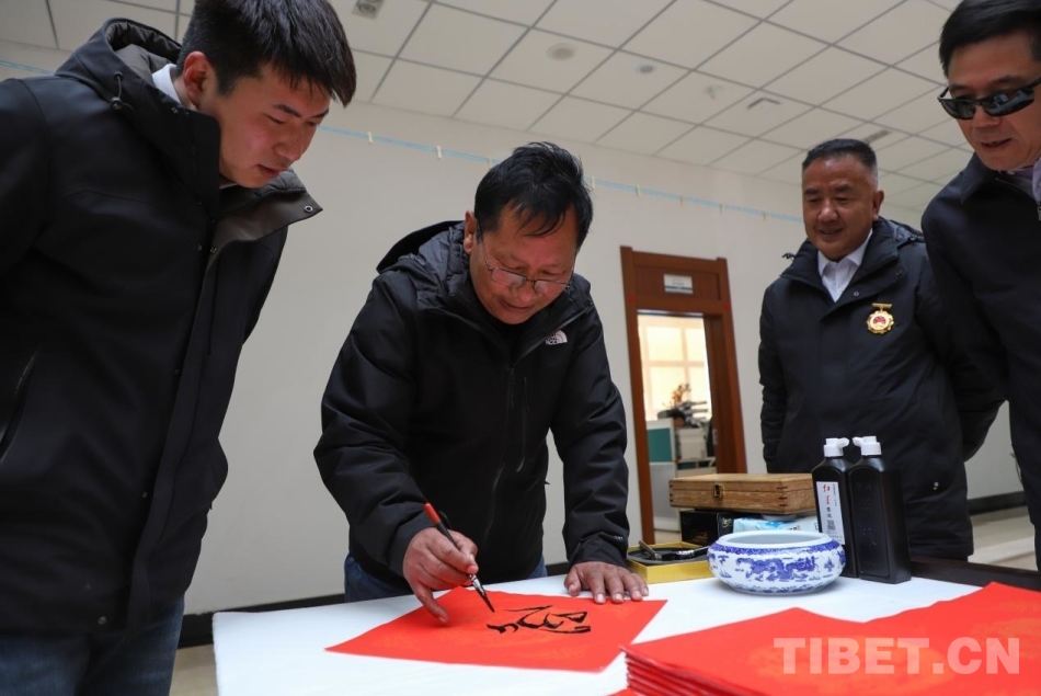 中國(guó)西藏網(wǎng)訊 1月29日,國(guó)網(wǎng)西藏電力有限公司大廳內(nèi)墨香四溢、紅紙鋪展,一片暖意融融。由西藏自治區(qū)總工會(huì)、自治區(qū)著力創(chuàng)建全國(guó)民族團(tuán)結(jié)進(jìn)步模范區(qū)專項(xiàng)組辦公室共同主辦的“翰墨迎春·情暖職工——民族團(tuán)結(jié)一家親”送福進(jìn)企業(yè)活動(dòng)在這里舉行。
