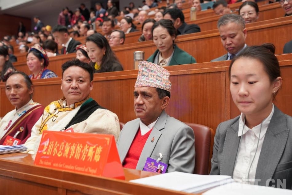 圖為尼泊爾駐拉薩總領事館負責人旁聽大會 攝影:王淑