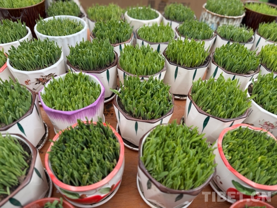 圖為青稞苗,是藏歷新年的“吉祥綠植”,象征著生機(jī)勃發(fā)、萬(wàn)物生長(zhǎng)。