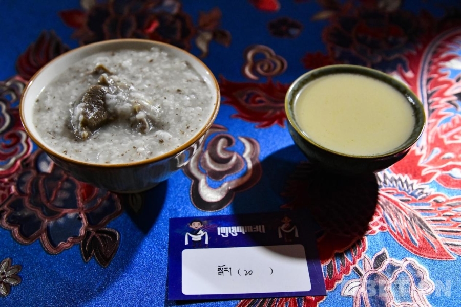 在美朵卓瑪家的客廳里,熱氣騰騰的古突粥香氣四溢。與拉薩地區(qū)常見的面疙瘩古突不同,阿里的古突是用青稞和其他五谷熬制成的“粥”,再加入大塊的牦牛肉,別具風(fēng)味。而最具特色的是“抽獎(jiǎng)”環(huán)節(jié)——由于粥狀的古突無法包裹餡料,村民們便將寫有不同祝福寓意的紙條放入盒中,以抽簽的方式?jīng)Q定新年的“運(yùn)勢”。