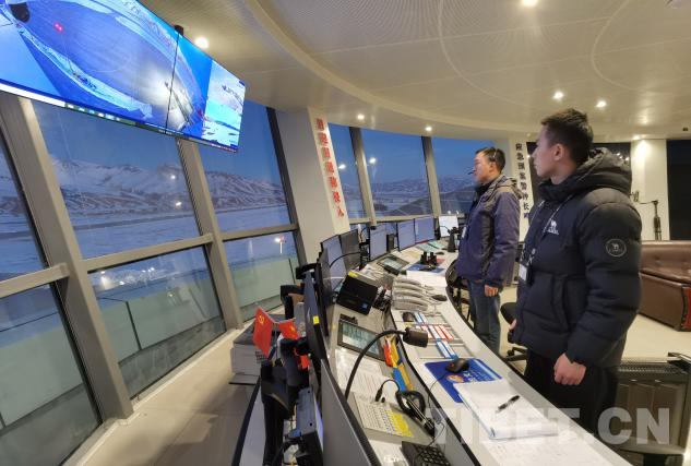 普蘭機場工作人員春節(jié)期間在塔臺指揮飛機起降