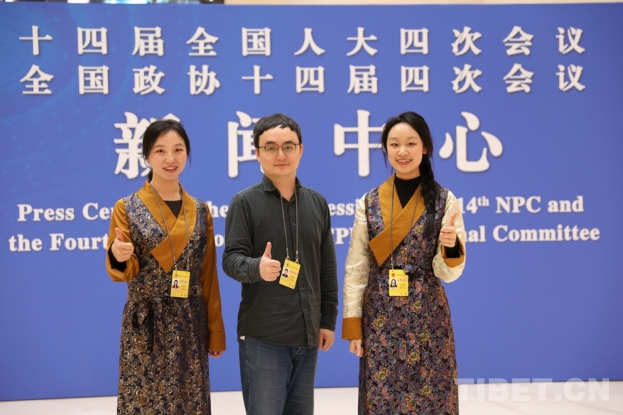 中國(guó)西藏網(wǎng)記者們?cè)?026年全國(guó)兩會(huì)新聞中心合影 攝影:劉莉