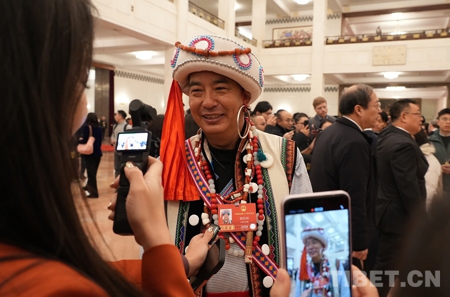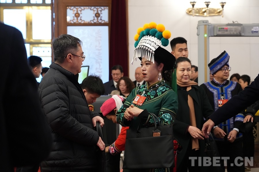中國西藏網(wǎng)訊 3月5日上午,十四屆全國人大四次會(huì)議在人民大會(huì)堂開幕。開幕會(huì)前,身著民族服飾的人大代表們步入會(huì)場(chǎng),接受媒體采訪。(中國西藏網(wǎng) 記者/邊子捷 劉莉 編輯/王妍丹)
