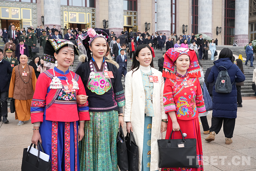 中國西藏網(wǎng)訊 3月5日上午,十四屆全國人大四次會議在人民大會堂開幕。開幕會后,身著民族服飾的人大代表們信心滿懷走出會場。(中國西藏網(wǎng) 記者/邊子捷 劉莉)