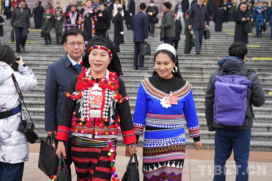 來自西藏自治區(qū)的全國人大代表走出會場 攝影:邊子捷