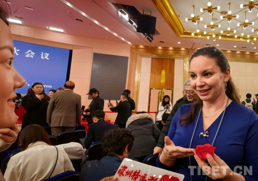 3月8日,在全國(guó)兩會(huì)新聞中心,來(lái)自玫瑰之國(guó)保加利亞的《言論報(bào)》記者塔尼亞·格盧赫切娃開(kāi)心地收到了深圳特區(qū)報(bào)記者贈(zèng)送的“三八節(jié)”禮物——一朵美麗的布藝紅玫瑰。