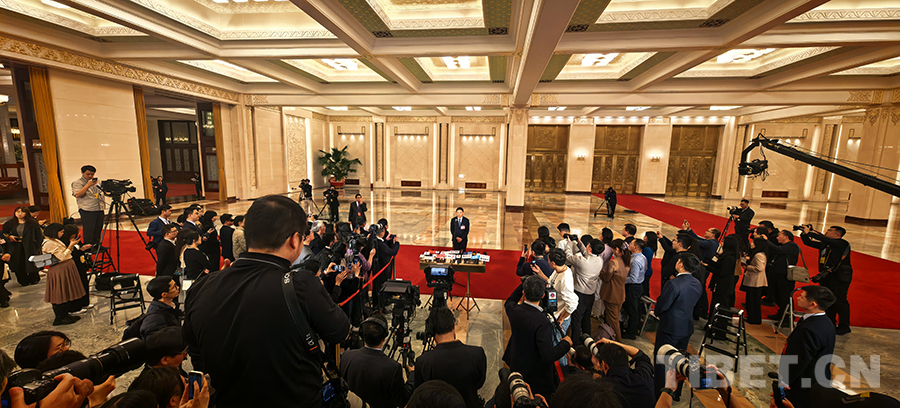 中國西藏網(wǎng)訊 3月12日,第十四屆全國人民代表大會第四次會議第三場“部長通道”集中采訪活動在北京人民大會堂舉行。司法部部長賀榮、自然資源部部長關志鷗、生態(tài)環(huán)境部部長黃潤秋走上“部長通道”接受媒體采訪。(中國西藏網(wǎng) 記者/劉莉 邊子捷 攝影報道)