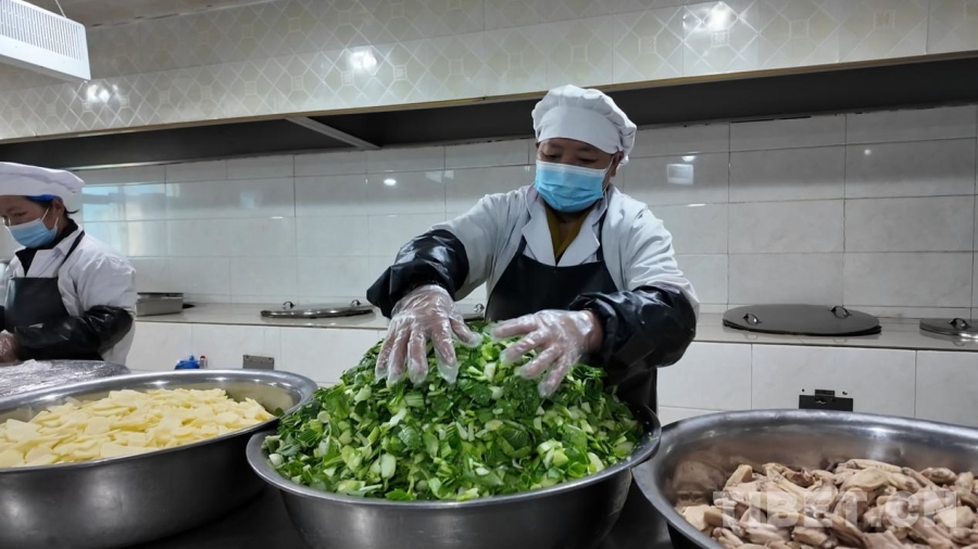 南木林縣第二中學(xué)后廚工作人員正在緊張準(zhǔn)備當(dāng)日午餐
