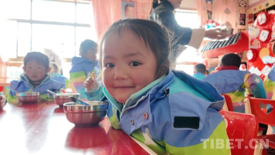 統(tǒng)一配備的營(yíng)養(yǎng)午餐得到南木林縣第二幼兒園學(xué)生的喜愛