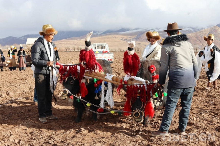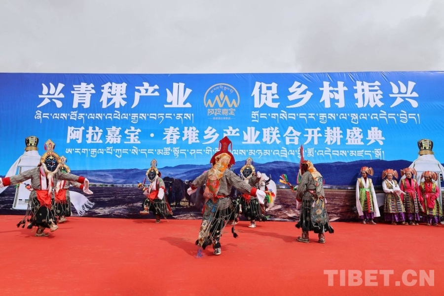 清晨的陽光灑向田野,煨桑的輕煙裊裊升起,春耕儀式在莊重的祈福聲中拉開帷幕。身著盛裝的群眾手捧吉祥糌粑撒向空中,祈愿風調(diào)雨順、五谷豐登。田野間,傳統(tǒng)木犁與現(xiàn)代農(nóng)機并肩作業(yè),古老的農(nóng)耕文明與現(xiàn)代農(nóng)業(yè)科技在這一刻交相輝映,生動展現(xiàn)了春堆鄉(xiāng)守正創(chuàng)新的農(nóng)業(yè)發(fā)展新貌。藏戲的悠揚唱腔與歡快的歌舞表演交替上演,春堆鄉(xiāng)藏戲表演隊帶來原汁原味的非遺展演,西藏阿拉嘉寶文化藝術團的舞步熱情奔放,為這片希望的田野增添了濃郁的節(jié)日氣息。