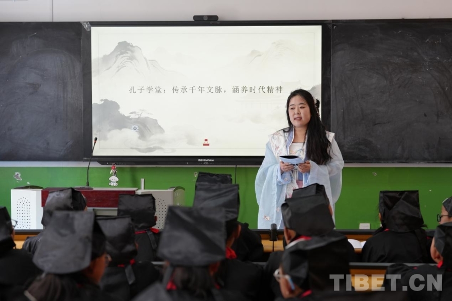 有一次,殷靚靚穿著漢服走進課堂,飄逸的衣袂瞬間吸引力所有孩子的目光??粗⒆觽儩M眼的好奇,她和援藏團隊的老師們萌生了新想法——依托山東儒家文化發(fā)源地的底蘊,在學校開設中華傳統(tǒng)文化興趣班,建起“孔子學堂”。在這里,孩子們讀經(jīng)典、學禮儀,還和濟南的小伙伴同步開展傳統(tǒng)文化活動,讓孩子們對千里之外的山東,多了一份更深的親近與向往。